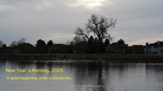 2026年の元旦は、雲に覆われた静かな朝でした。日の出時刻前から待っていましたが、太陽は姿を見せず、しばらくして水面に映る淡い光から、新しい年の始まりを感じました。